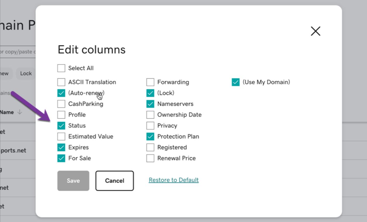 - Make domain status a default column